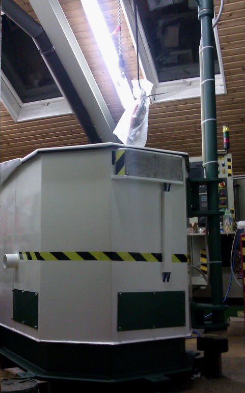 OBDobdelovalnega procesa.Sušenje poteka v bobnu (košari) katero z obdelovanci vložimo v centrifugo in jo po končanem sušenju zopet dvignemi iz centrifuge.Za manipulacijo košare uporabljamo ročno vodeno električno dvigalo, ki je pritrjeno nad centrifugo in je krožno horizontalno pomično.