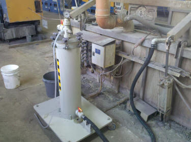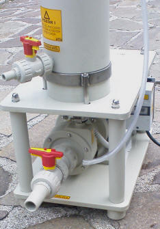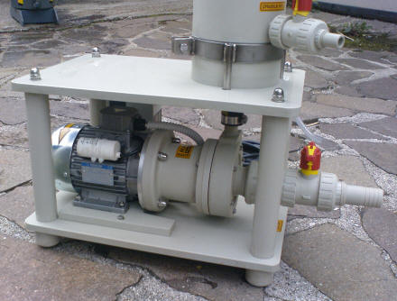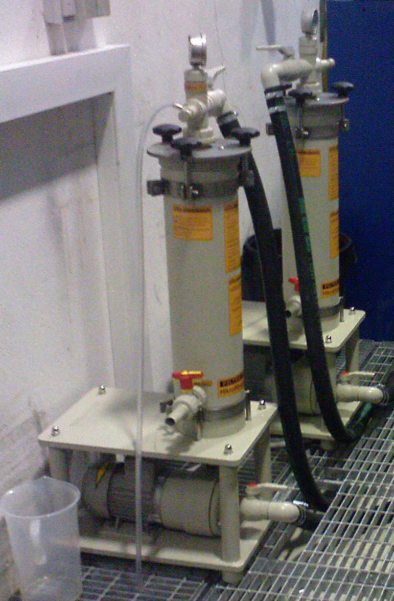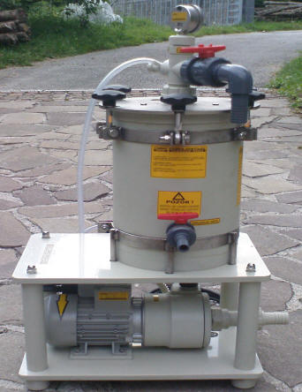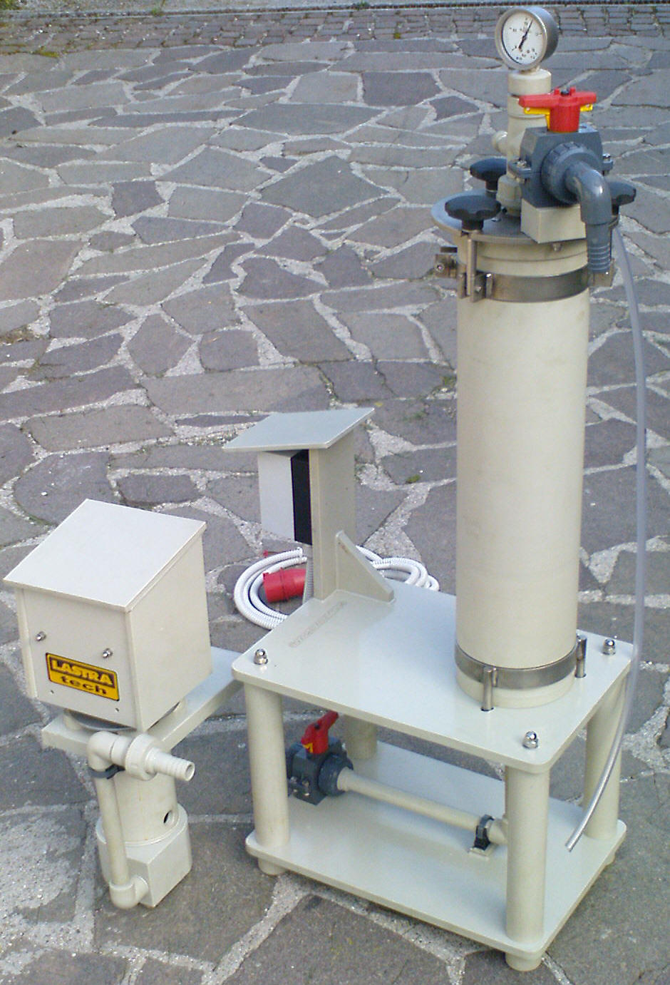 MAGNETA. Medij pride v stik izključno s plastičnimi materiali, kateri imajo izrazito dobre kemijsko odporne lastnosti. Filtrirna košara je izdelana tako, da se filtrirno platno pere in ni potrebno menjati filtrirnih vložkov.Pri določenih tehnoloških rešitvah pa je možno filter čistiti kar z obratno smerjo pretoka medija. Pri kontinuirnem fitriranju je na pokrovu filtra vgrajen manometer za kontrolo nasičenja filtra. Izvedba filtra je izdelana mobilno in primerna večjim mehanskim obremenitvam. Menjava filtrirnega modula je zelo poenostavljena, saj se modul izvleče iz okvirja v celoti in se šele nato po potrebi razstavi.