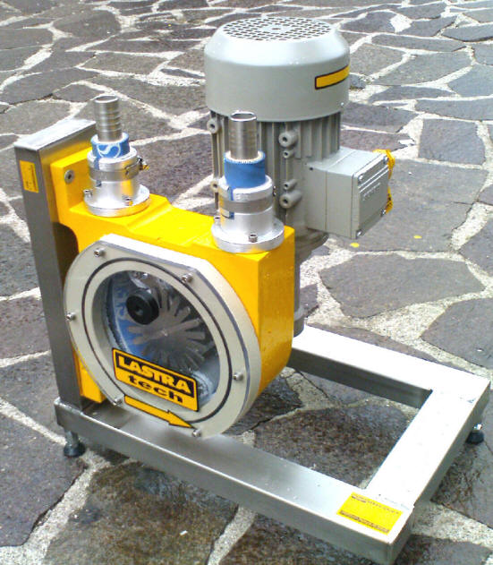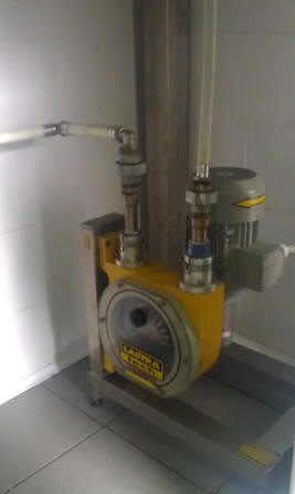 | Pritisni mehanizem je izdelan tako da je pritisk porazdeljen preko centra pogonske gredi na dva dela, zato ni prisotnih izrazitih impulznih pretokov kateri se pojavljajo pri batnih, excentričnih in membranskih črpalkah. Delovanje je izrazito mirno ker črpalko poganja polžni reduktor. Zaradi izvedbe je črpalka primerna za doziranje in hkratno kontrolo pretoka. |