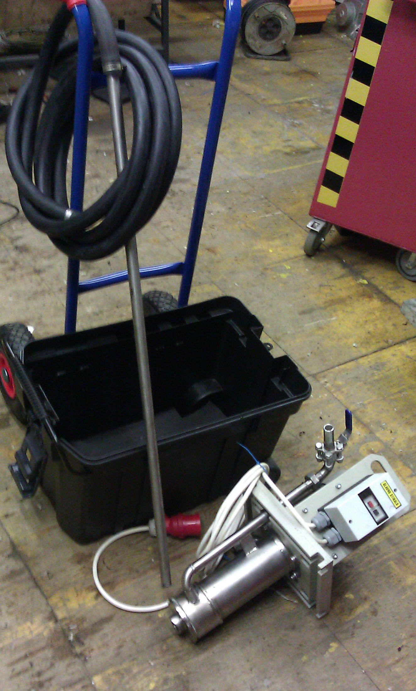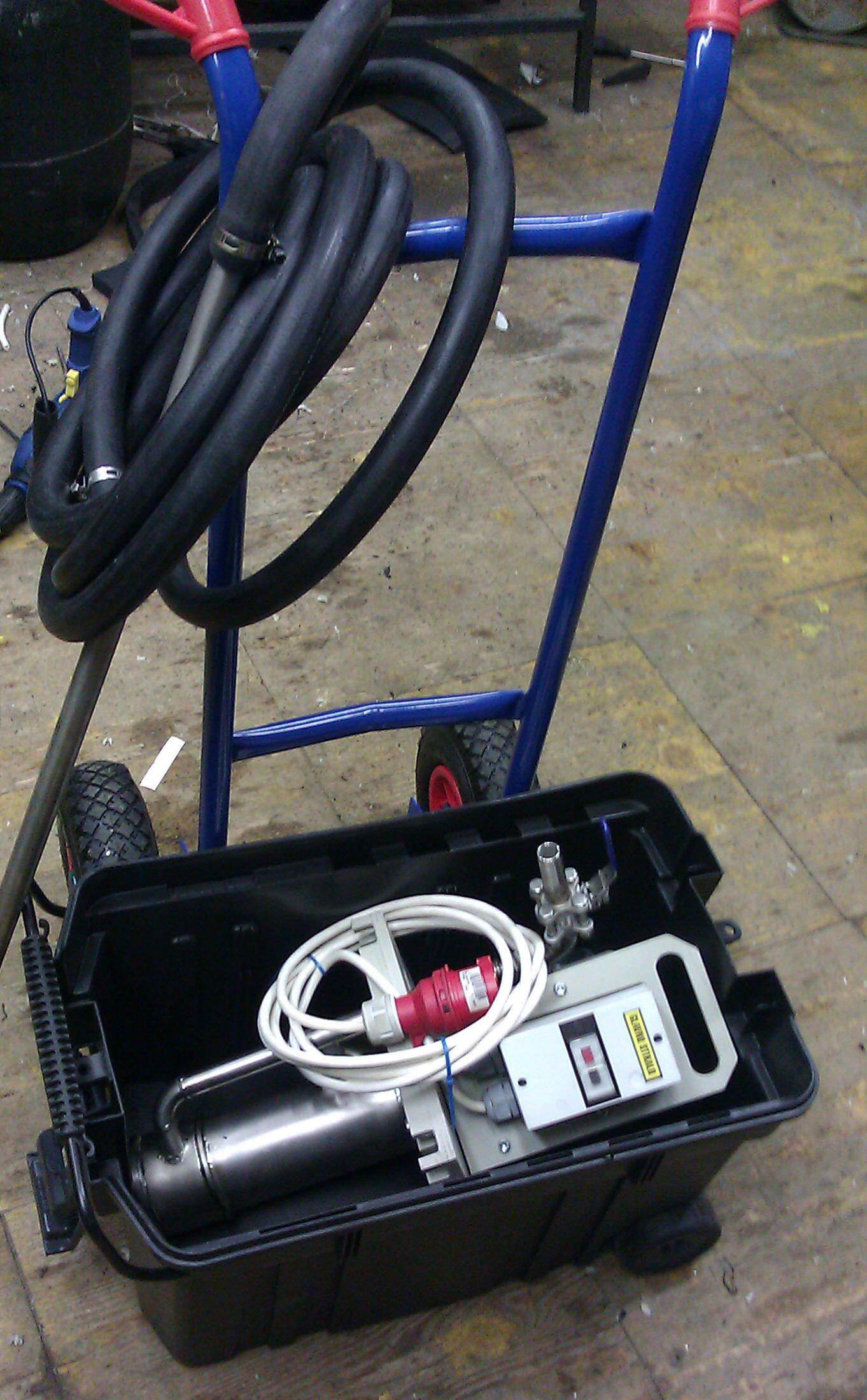 črpalka je montirana na prenosnem  prevoznem vozičku