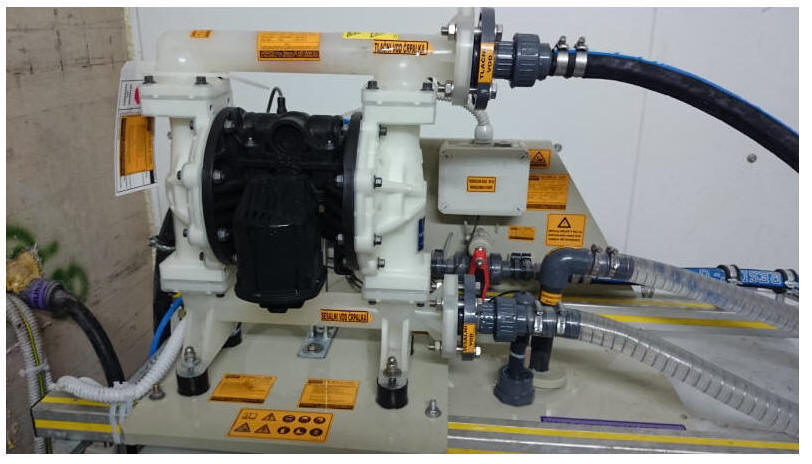 Naprava je izdelana za potrebe prečrpavanja in doziranja nevarnih snovi