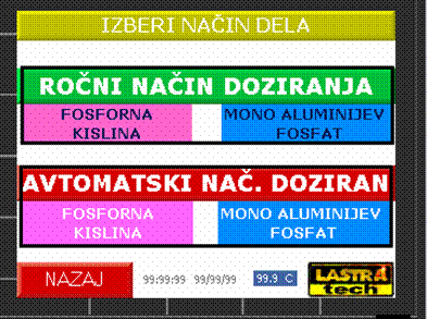 1. V MENIJU AVTOMATSKI NAČIN DOZIRANJA IZBERITE KEMIKALIJO KI JO ŽELITE