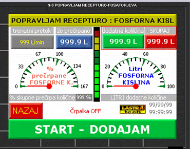 KOLIČINE SO ZOPET NA NIČLI IN Z TIPKO POTRDI IN START SE PREČRPA NOVA