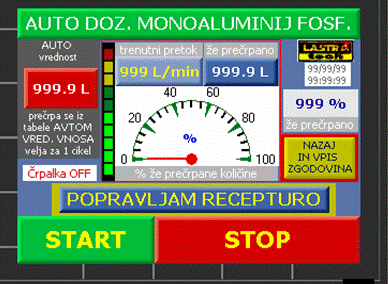so krmiljeni preko izdelanega programa v PLC kontrolerju z dozirnim