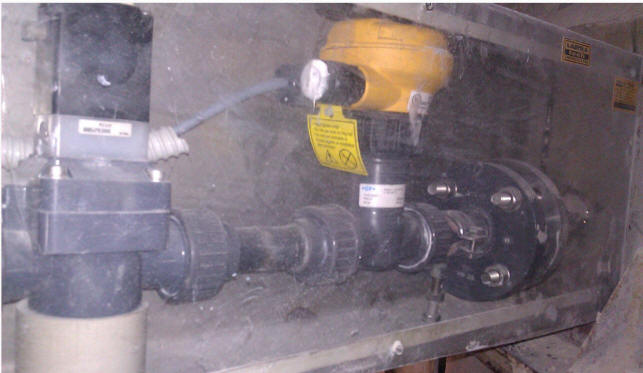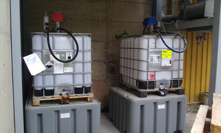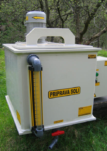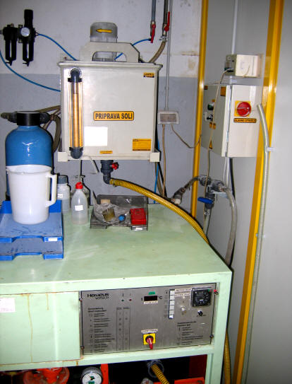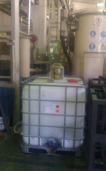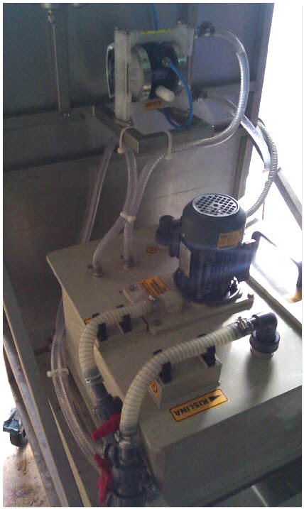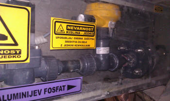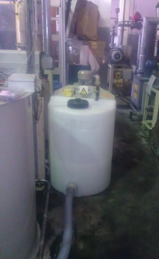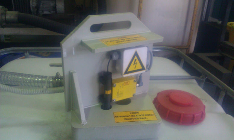 varno prečrpavamo jedkalo v napravo iz nje in iz soda v sod. |