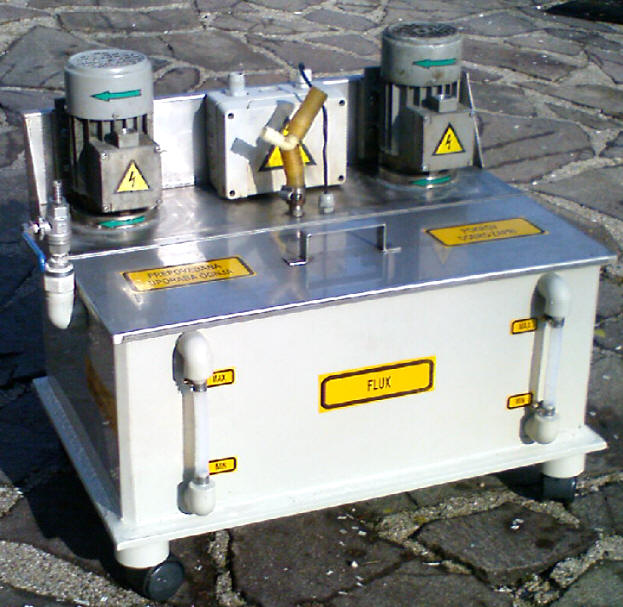 | TEHNIČNE INFORMACIJE : | | : | za ABRAZIVE | | Materiali: | INOX A4 | | | Max pretok: | 50 l/min* | | | | | | | | | Material mešala /ohišje/gred/prevleka | pp/inox | | | | | Max temp medija INOX: | 120 C | | dimenzije | 500x500x200 | | krmiljenje: | PLC avtomatično | | Moč: | 250W | | Teža: | 26 kg | | | | | *po dogovoru | | LAHKO OBRATUJE V SUHEM TEKU. |