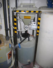 | .SPLOŠNONaprava je namenjena dozirnaju barijevega karbobnata , kalcijevega hidroksida,sode bikarbone .....v pripravno kopel. Vsebine se strese v odprtino , se pokrije z pokrovom in ob vključitvi polžni transporter z pomočjo vibratorja potiska vsebino v pripravljalno kopel. Za optimalno delo je polž krmiljen z frekvenčnim regulatorjem in sistemom avtomatskega in ročnega režima.Avtomatski režim je obratovanje polža preko časovnega releja v razmerju 1:1 in možnostjo nastavljanja hitrosti doziranja,Ročni režim pa je neprekinjeno obratovanje polža s tem da mu ravno tako lahko prilagajamo hitrost.