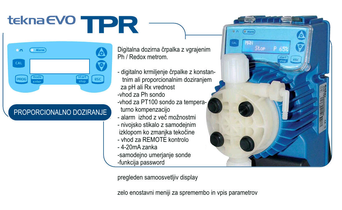 Na sliki je vidna črpalka serije TPR 6L/H z integriranim pH metrom in