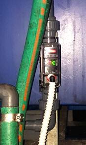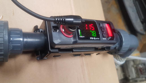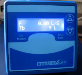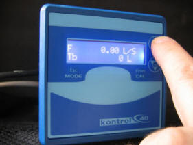 Zaženete črpalko, na zgornji vrstici kaže trenutni pretok v litrih na minuto na spodnji vstici pa prišteva litre ko doseže 9 litrov