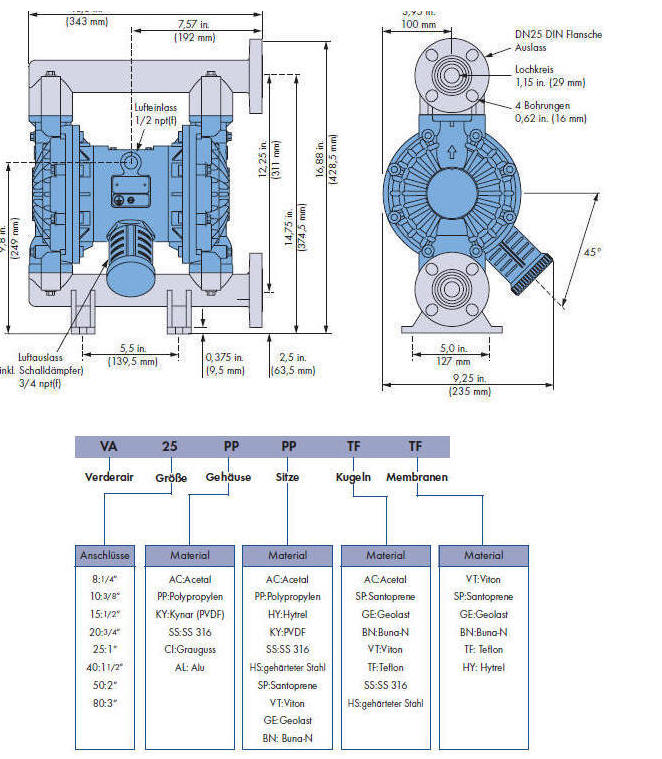 materiali : PP,aluminij, INOX 316Ti ali PVDF |