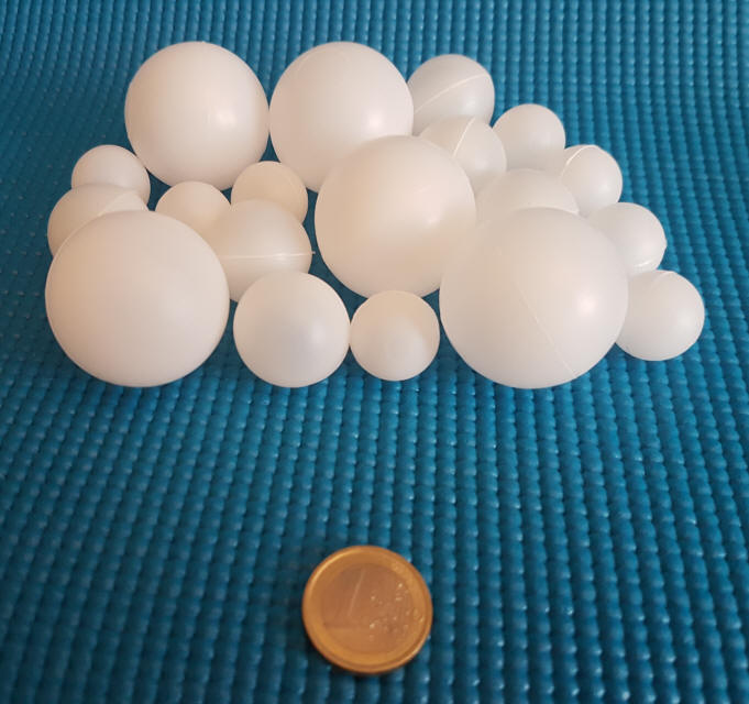 Krogle se razlikujejo po velikosti, debeljini stene - teži , vrsti materijala , barve: bela, transparent rdeča.