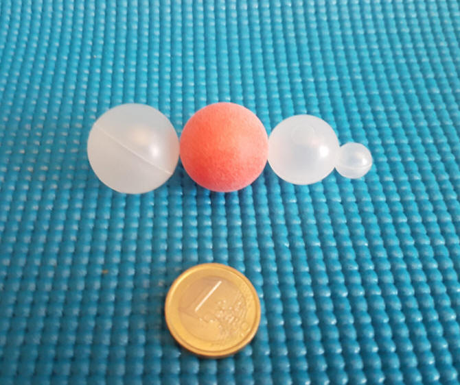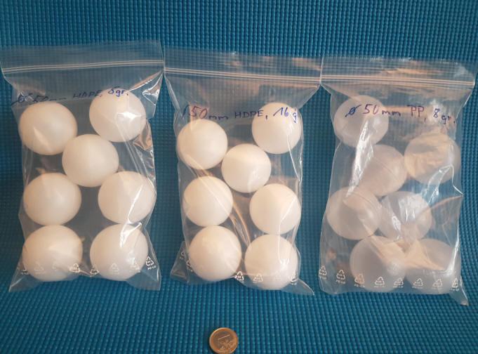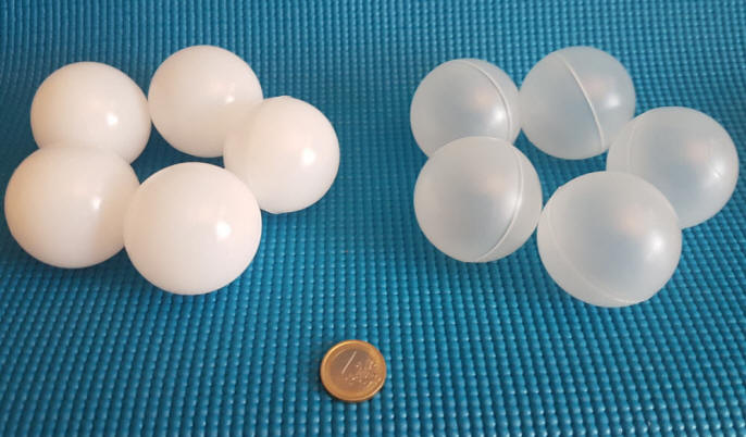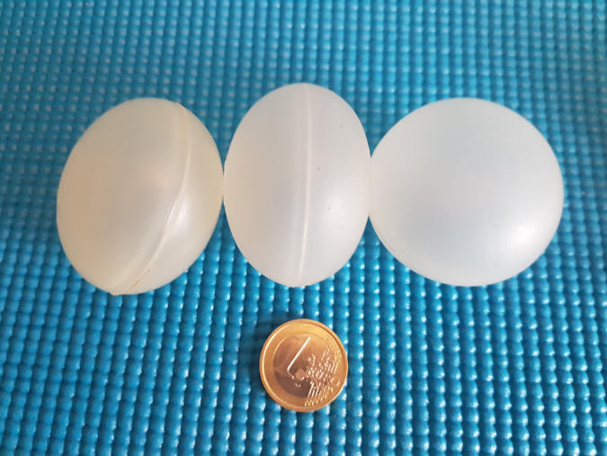 Krogle so vse votle . Izdelane so tako da se šiv na spoju polovic vidi in niso popolnoma brez šiva.