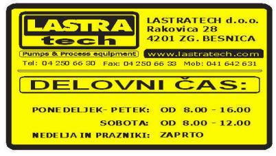 LASTRATECH d.o.o. , Rakovica 28, 4201 Zg.Besnica-KRANJ tel: 04 250 66 30 fax: 04 250 66 33, gsm: 041 642 631 |